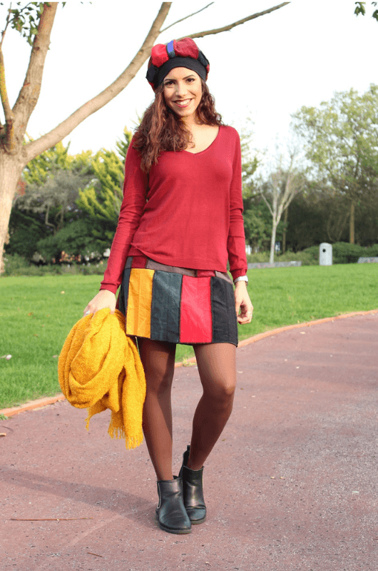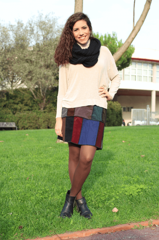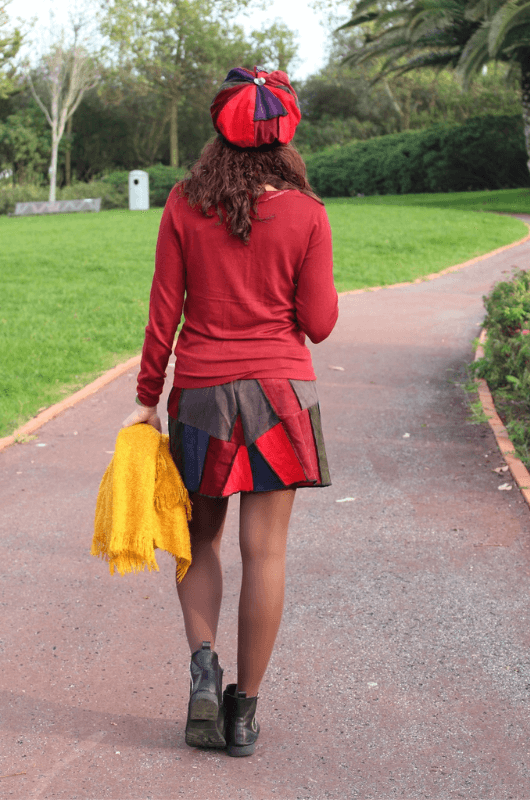 Mini-saia em retalhos sortidos de bombazine, tamanhos M e S, cós em ribana com elástico.